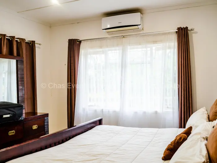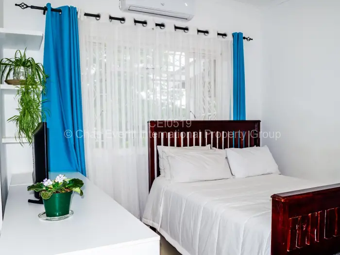 Welcome to this stunning fully furnished 4-bedroom house available for rent in Matsheumhlope, Bulawayo. Step inside to discover a spacious living room featuring modern leather sofas, a stylish wooden coffee table, air conditioning to keep you comfortable all year round. The well-equipped fitted kitchen boasts a washing machine, tumble dryer, dishwasher, microwave, 2 plate electric and 4 plate gas stove and a double door refrigerator, air condition perfect for culinary enthusiasts.
