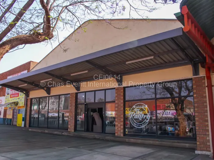 Discover a prime restaurant opportunity for rent in the bustling Bulawayo City Centre. This 250sqm retail space boasts a modern aesthetic with a striking brick facade complemented by large windows, fostering an inviting atmosphere filled with natural light. The overhanging metal roof provides essential shade, enhancing the overall appeal for potential customers.