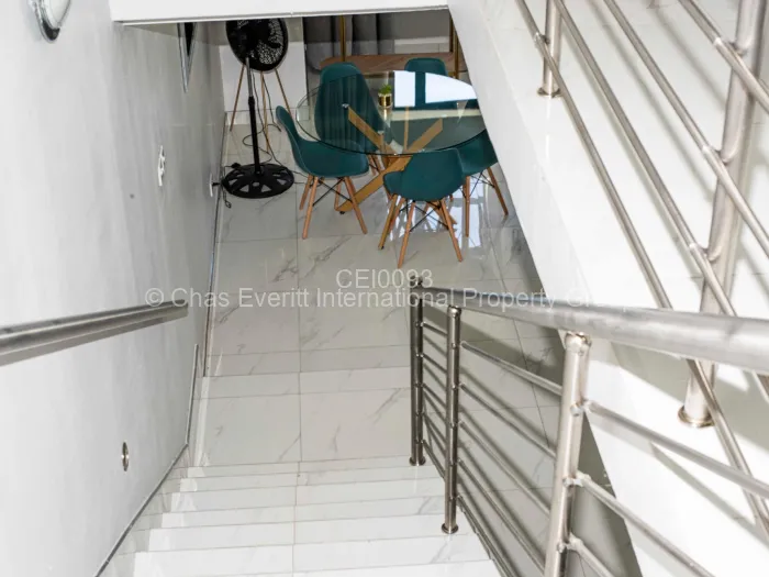 Discover the perfect short-stay rental option in the heart of Newlands, Harare with these modern four-bedroom villas. $200/night or $3200 Monthly. These two-storey townhouses boast an inviting faade featuring a contemporary blend of gray and brown tones, complemented by gabled metal roofs. Each unit is designed with spacious interiors that maximize natural light, highlighted by large windows, and includes a comfortable lounge and a stylish dining area.