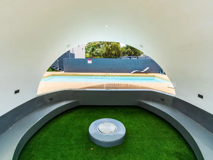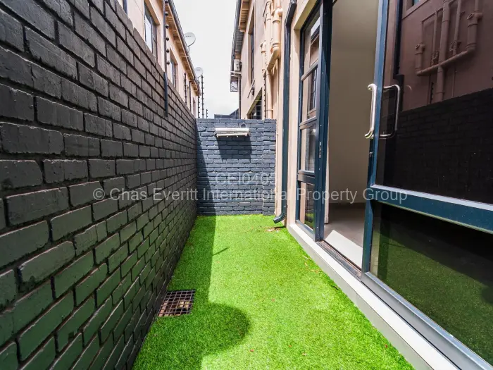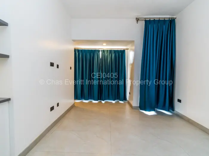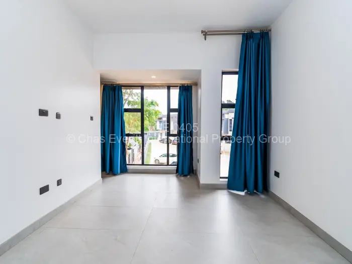Welcome to this modern townhouse located in the prestigious Borrowdale West area of Harare. As you enter, you are greeted by a beautifully defined entrance featuring a stylish stone wall, perfectly complemented by surrounding greenery. The steel gate enhances security while providing ease of access to residents.