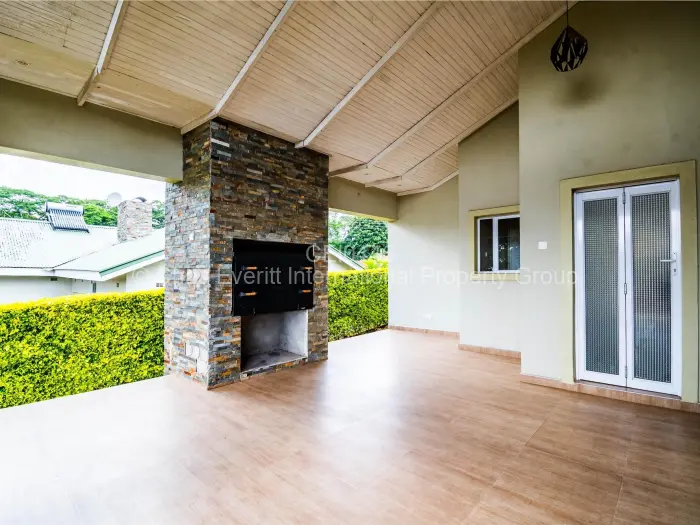 Lounge opens onto a veranda/entertainment area featuring a built-in grill & pizza oven