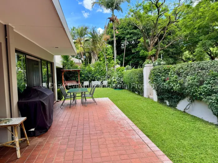 The property offers three generously sized bedrooms, with the main bedroom having an ensuite, walk-in closet for your comfort, all the bedrooms have ceiling fans complemented by a stylish spare bathroom. Additional conveniences include a laundry room, storeroom, relaxing outdoor area, and domestic quarters with a one-bedroom ensuite (shower and toilet).