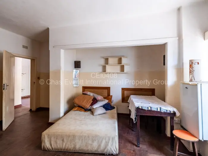 A narrow hallway connects multiple rooms, epitomizing practicality, while natural light filters through additional windows. Ascend the wooden staircase that invites exploration of further accommodations. This property not only offers reliability with municipal water and Zesa but is also fully walled and fenced, ensuring security and privacy for guests. Your dream hospitality venture awaits in this prime location!