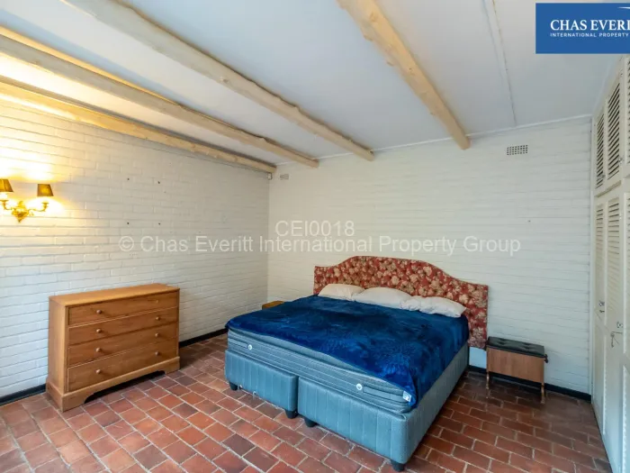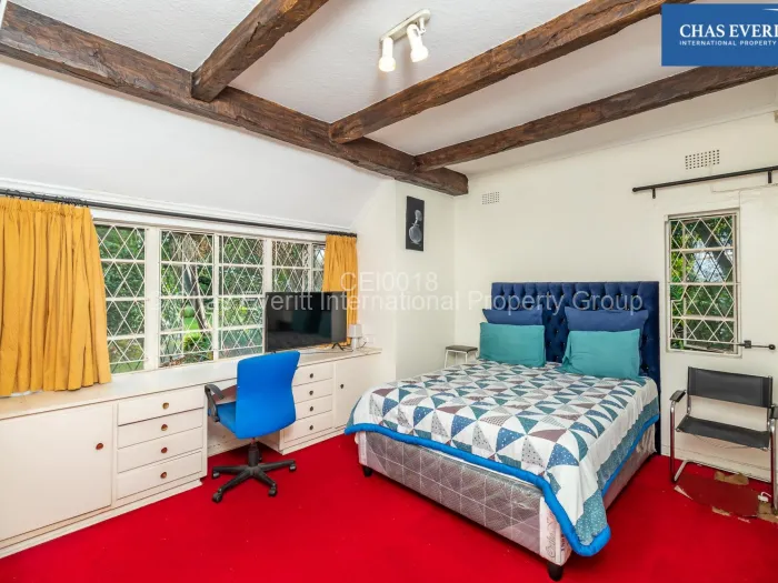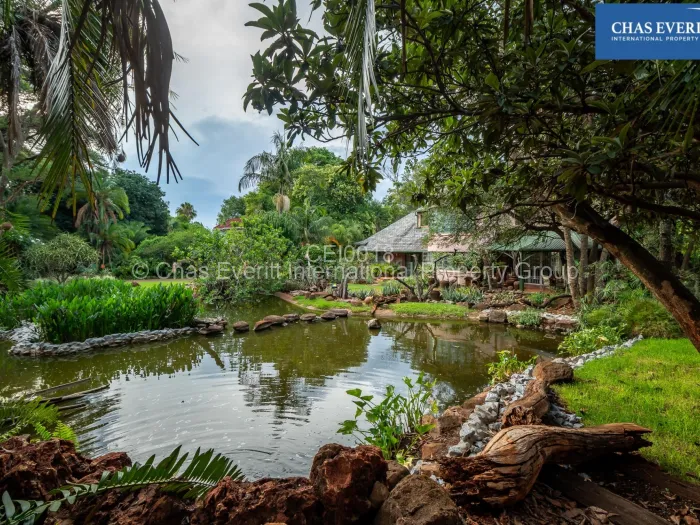 This character property has a great borehole that services a meticulously maintained garden that boasts a unique sprawling pond and that houses ducks and fish, bringing you closer to nature right from your doorstep; the botanical style garden artfully combines rustic design elements with a touch of timeless elegance. Each bedroom is spacious, generously furnished with built-in cupboards and accompanied by a well-appointed bathrooms, ensuring ample comfort and privacy. Expansive windows throughout the house allow for plenty of natural light, creating a warm, uplifting atmosphere that caters to calm and serene living. The newly renovated kitchen with a walk in pantry and scullery is fully equipped with state-of-the-art appliances and abundant storage.