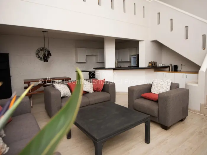 Adjoining the house is a small courtyard that leads to a self contained one bedroom (2nd bedroom if you use the mezzanine) guest toilet, full bathroom all on the top floor and downstairs is an open plan lounge/ dining with a fireplace and kitchen.
