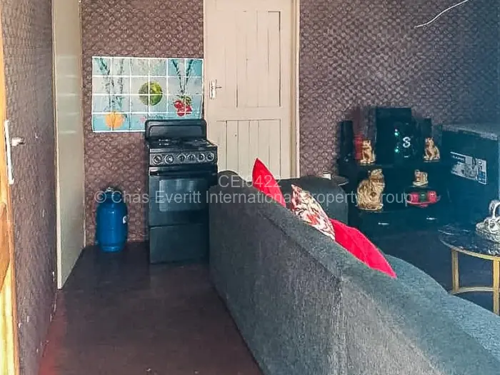 Sitting on 300sqm, with title deeds, the home features three bedrooms with ceilings, a tiled family bathroom plus a separate toilet, and a functional kitchen with tiled floors. The cosy lounge and dining area create a warm space for everyday living.