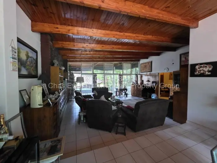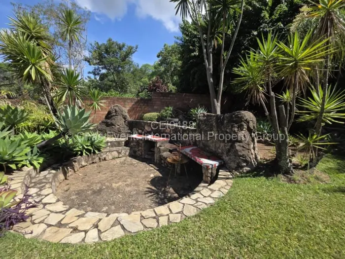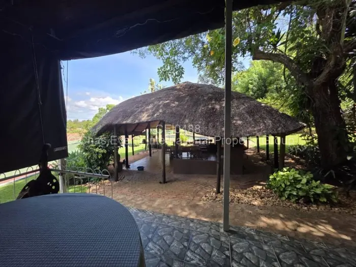 Nestled in the prestigious suburb of Hillside, this exceptional home is set on an acre of beautifully landscaped grounds. The residence offers four well-appointed bedrooms and three bathrooms, complemented by a fitted kitchen and elegant open-plan lounge and dining areas. Outdoors, the property impresses with a swimming pool, jacuzzi, tennis court, and a charming thatched gazebo ideal for entertaining. Additional features include a hilltop look out room, staff quarters, a games room, and a triple carport, all surrounded by an established multi-level garden with an impressive water fall feature.