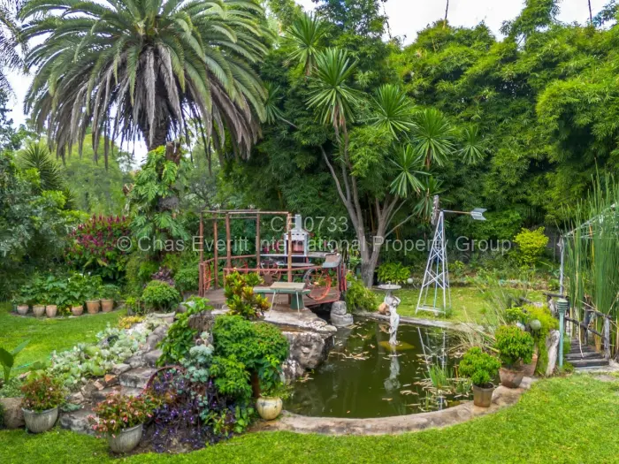 The property also features a self-contained cottage, ideal for guests, extended family, or as a potential rental income stream. Additional highlights include a workshop, decorative ponds that enhance the garden setting, and a dependable borehole for consistent water supply.