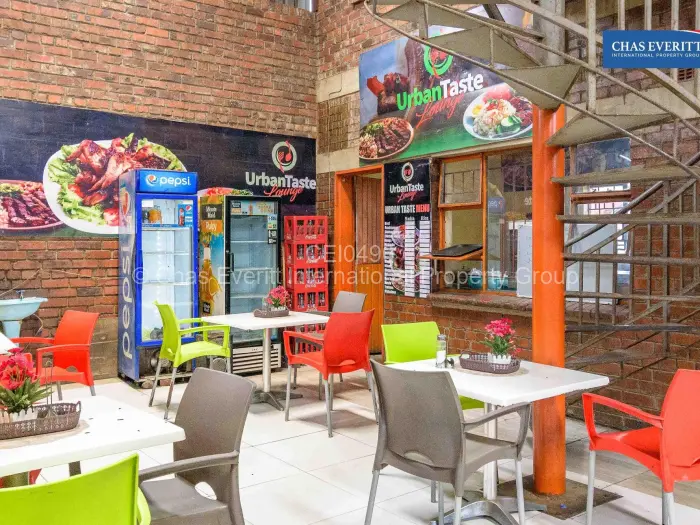 The retail area showcases vibrant display shelves filled with an array of products. The polished concrete flooring adds a sleek touch, while a designated dining areacolorfully furnishedinvites a sense of hospitality. This space is ideal for establishing a thriving business, boosted by essential amenities including reliable municipal water, water tanks, and dependable power supply from Zesa.