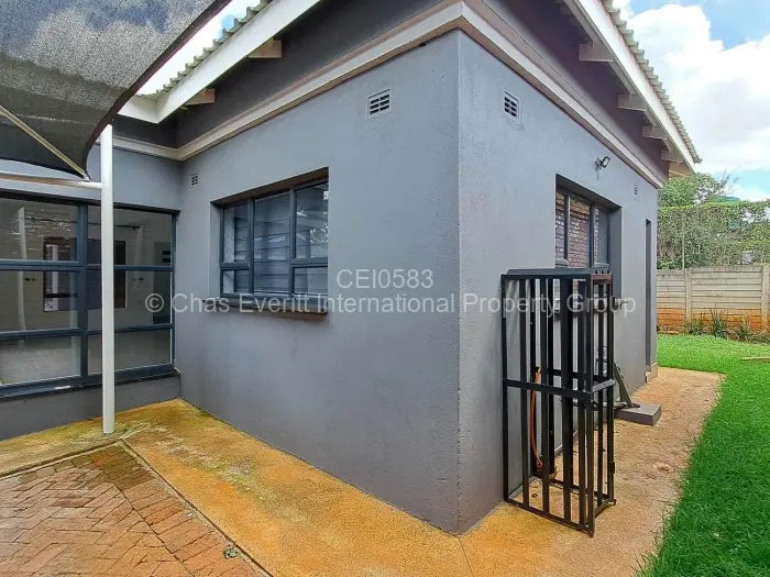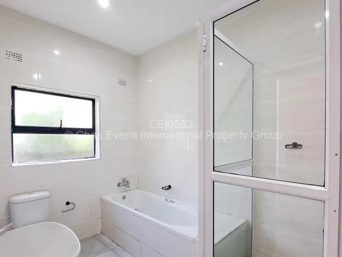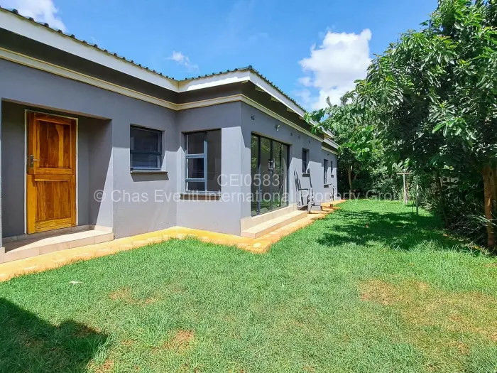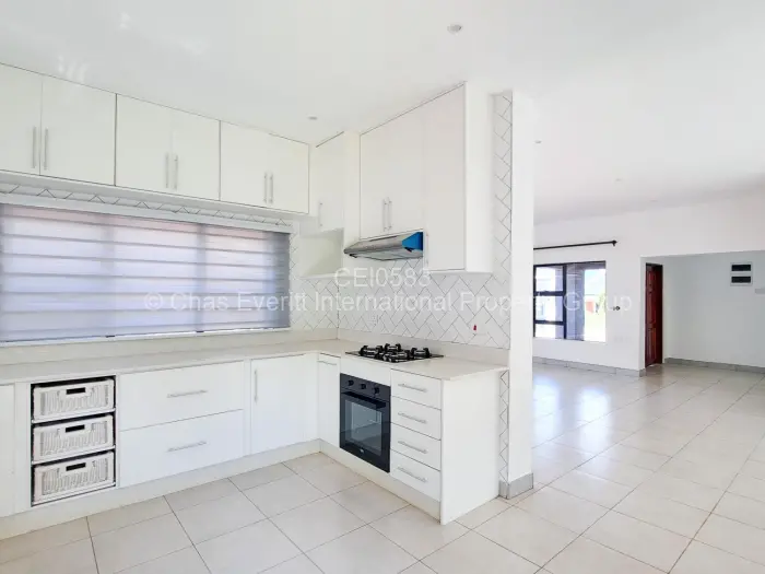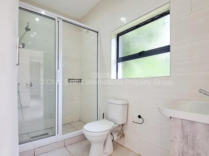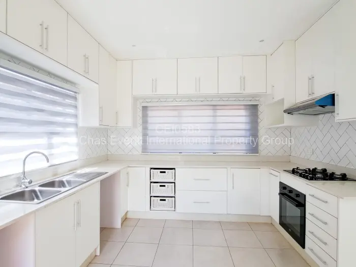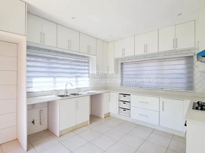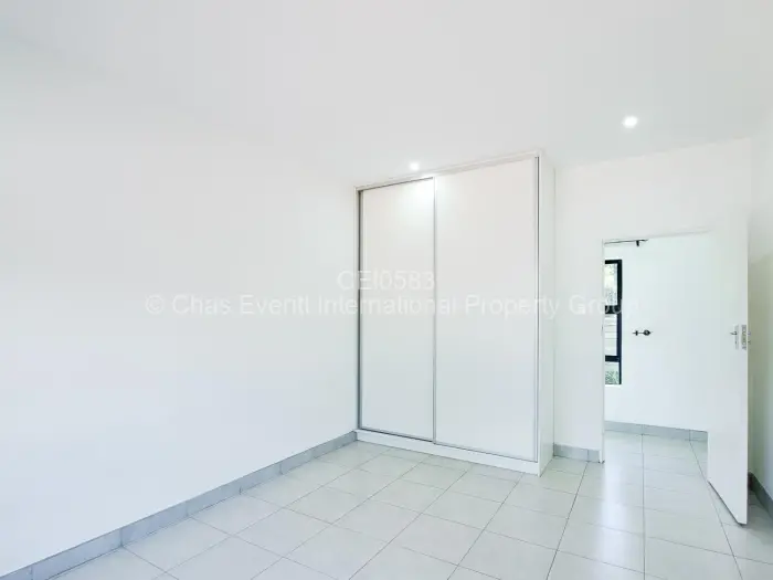 A modern 2 bedroom cluster located in mandara featuring a main ensuite ,a common bathroom with both shower and tub and an open-plan dinning and lounge area. The fitted kitchen includes a 5 plate fitted gas stove and opens onto a beautiful entertainment area. Extras include a prolific borehole ,solar backup, electric gate and cctv ,offering secure and comfortable living.