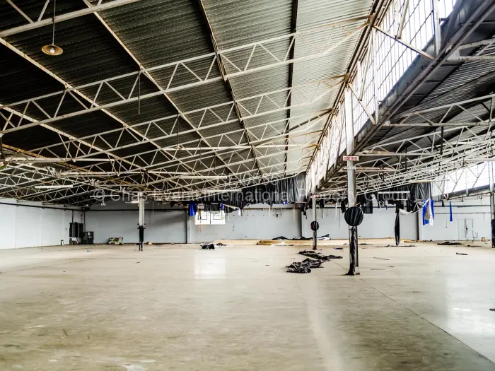 Available for rent in Belmont, Bulawayo, this 3000m2 warehouse offers a versatile open space perfect for various industrial or commercial purposes. The property features simplistic, functional design elements, with walls painted in a muted yellow that brighten the environment.