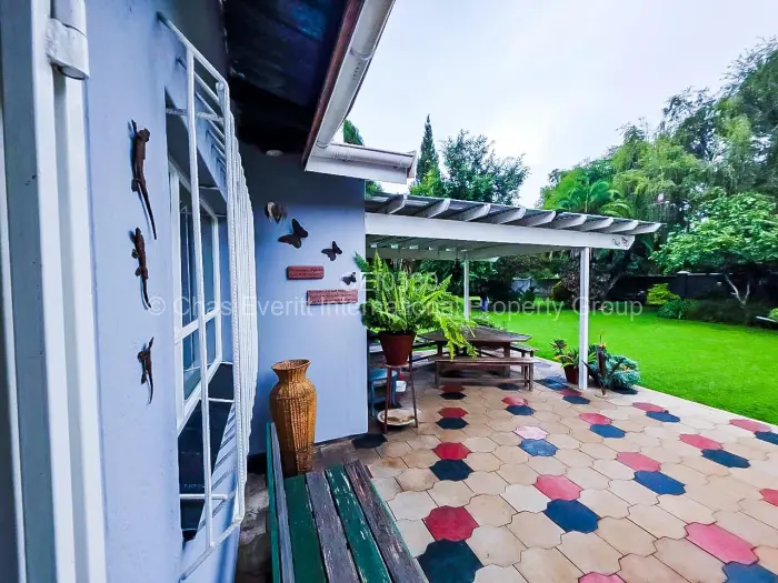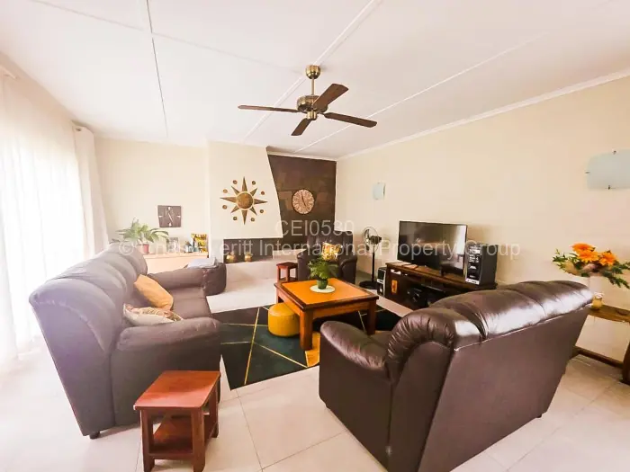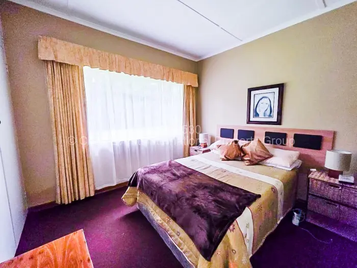 Beautiful Morningside Residence set on immaculately maintained grounds with manicured lawns and a consistently well-kept property. The home offers three bedrooms, office, open plan lounge/dining room, fireplace and a well-fitted kitchen, with interiors presented in a neat and orderly condition throughout. Additional amenities include a prolific borehole, water storage tanks, carports, a solar geyser, and a solar power system, ensuring convenience and sustainability Walled and gated.