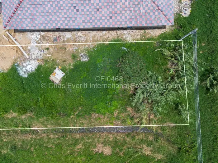 Discover a prime residential stand in Glaudina, Harare, with a generous property size of 303sqm. This expansive lot is predominantly covered in lush green grass and is clearly marked with yellow string outlining its boundaries, giving you a clear vision of the layout.