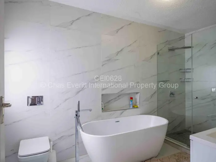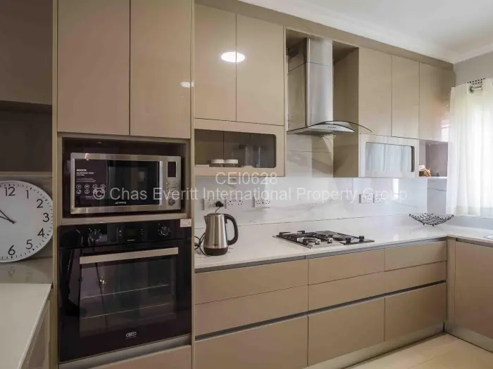 Townhouse is modern with high quality finishings and exquisitely designed for comfortable living. Downstairs -comprises modern fitted kitchen, lounge, dining room, under stairs storage, guest toilet and a veranda overlooking a neat garden